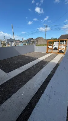 Casa Geminada Nova, no bairro Tramandaí Sul, proximo da Av. Perimetral, que tem fácil acesso ao Mar. Composta por: 02 dormitórios, sendo 01 suíte; Sala e cozinha integradas; 01 banheiro social; Laje de concreto; Posição solar frente mar; Área de serviço; Churrasqueira; 02 vagas para veículos; Pátio fechado. Apta a fianciamento bancário. Agende sua visita e confira essa bela casa. CRECI 79745. Eliasar Imóveis - Tramandaí-RS.